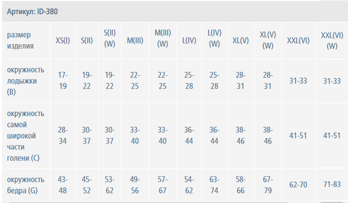 - убывающий градиент компрессии снизу вверх (на лодыжке максимальное давление в мм.рт.ст.);