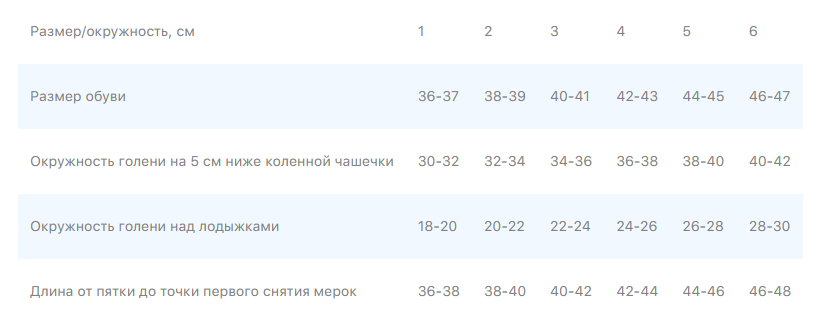 В области щиколотки и голеностопного сустава компрессия составляет 100%, ниже коленного сустава компрессия уже 70% от начального значения. Постепенное снижение компрессии позволяет нормализовать отток жидкости из нижних отделов ног, защищает венозную стенку от деформации и ускоряет ток крови, что упрощает и нормализует работу венозной помпы.