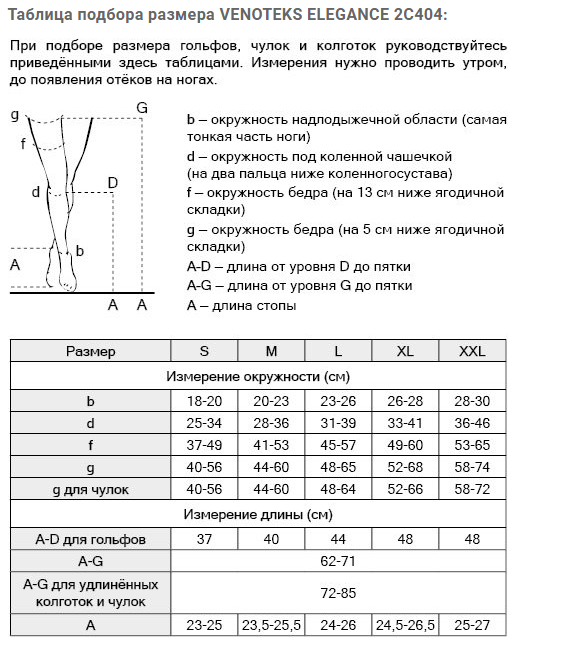 Показания к применению колготок VENOTEKS ELEGANCE 2С404: