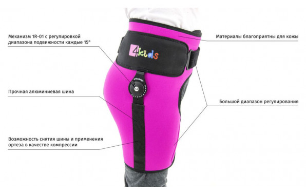 Детский ортез бедра FIX-KD-19 – это ортопедическое изделие, используемое при детском хроническом артрите, болезни Пертеса и других дегенеративных изменениях тазобедренного сустава. Данный продукт изготовлен из очень тонкого неопрена, который обеспечивает низкий вес продукта и постоянное компрессионное сжатие тазобедренного сустава, чем уменьшает болевые ощущения и воспалительный процесс.