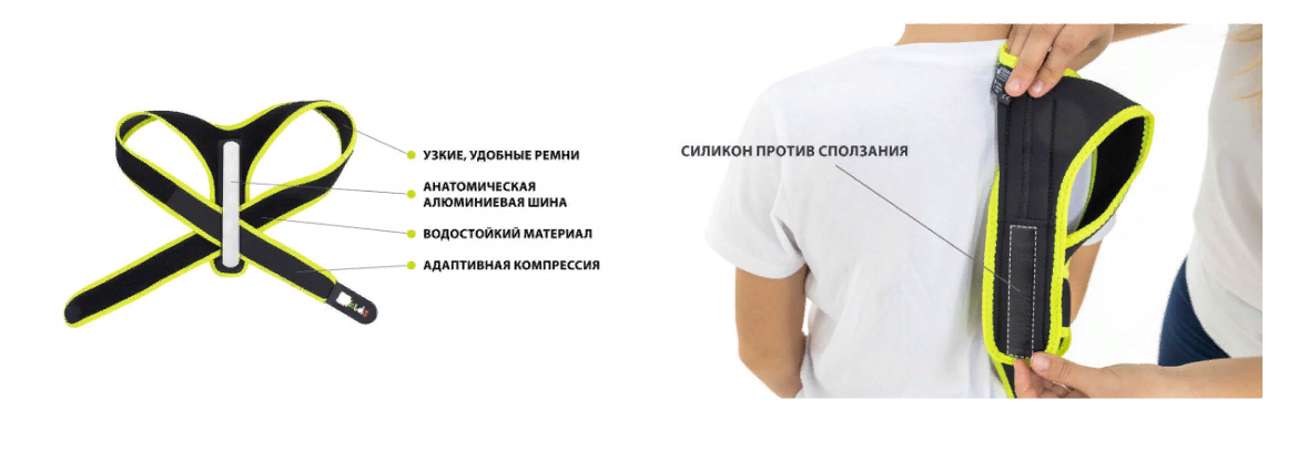 Корректор осанки удерживает плечи, лопатки и верхнюю часть спины в анатомически правильном положении. В нем используется алюминиевая вставка, которую можно легко отрегулировать в соответствии с изгибами позвоночника. Ношение корректора позволяет выработать мышечную память и скорректировать уже имеющиеся нарушения осанки.