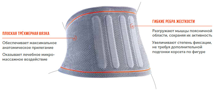 - Эластичная ткань корсета оказывает распределенное компрессионное воздействие на мягкие ткани