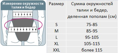 Для правильного выбора подходящего размера ортопедического корсета серии Silver Line Orlett DLSS-4000(F) необходимо сантиметровой лентой измерить окружность талии и бедер. Далее сумму окружностей поделить пополам и воспользоваться таблицей, представленной ниже: