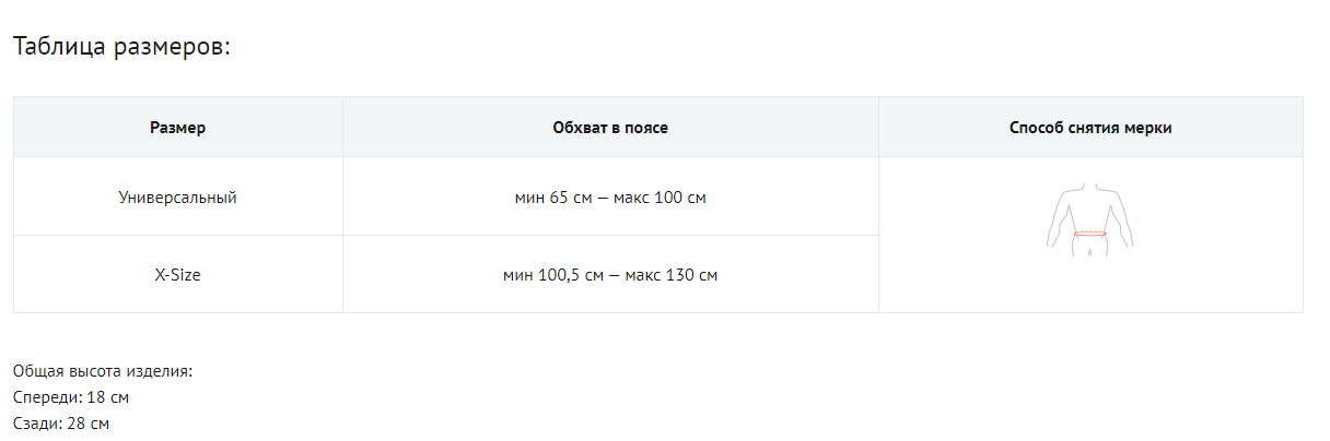 - Универсальный размер – подходит для фигур любого типа