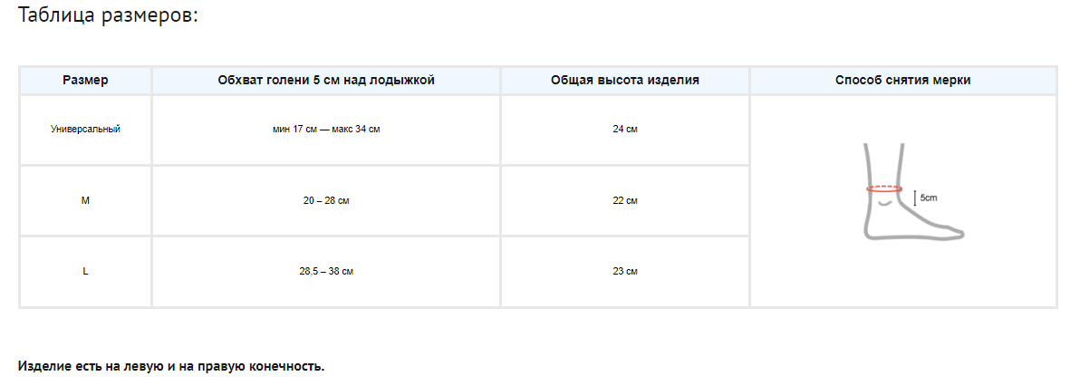 Ортез для лодыжки с изготовлен из специального вспененного материала с закрытой клеточной структурой