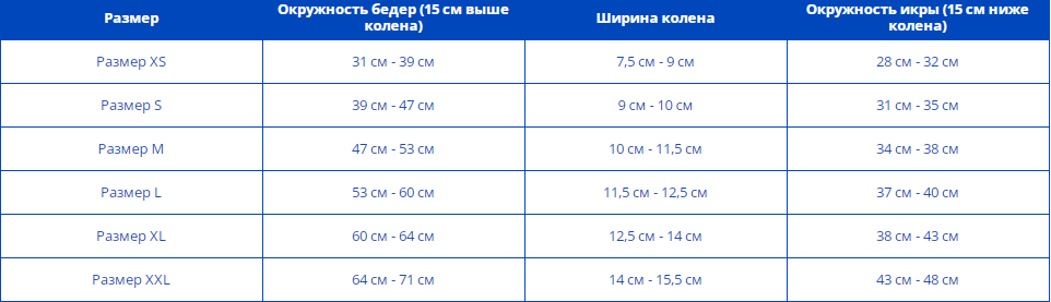 | Размер. | Ширина коленного сустава (см) |