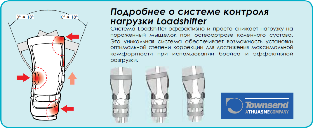 Назначение ортеза - остеоартрит коленного сустава. Rebel Reliever - это единственный ортез для колена, универсально адаптирующийся к медиальному ОА, латеральном ОА и нестабильности связок. Ортез предназначен для стабилизации колена, мягко применяя корректирующую силу на 3 точки к ноге. Запатентованная технология Townsend LoadShifter обеспечивает необходимый механический рычаг для смещения усилий в сторону колена. Ортез эффективно ограничивает смещение (варус или вальгус) и перераспределяет нагрузку, что приводит к меньшению болевых ощущений.