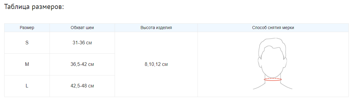 Ортез стабилизирует и фиксирует шейный отдел позвоночника, разгружает мышцы шеи, способствует нормализации кровообращения. Простота подгонки, комфортный материал, легкий вес минимизируют дискомфорт, связанный с ношением бандажа, и способствуют быстрому достижению лечебного эффекта. Изготавливается из эластичной полиуретановой пены и покрывается приятным на ощупь хлопковым покрытием. Степень обхвата шеи регулируется при помощи застежки-липучки Velcro.