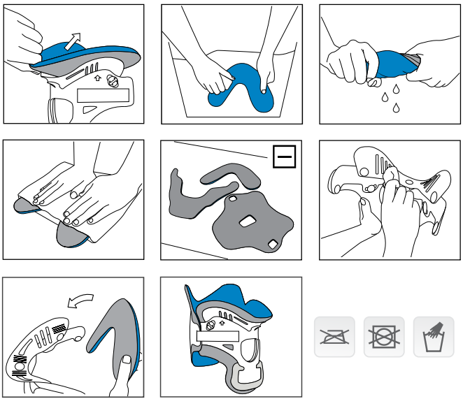 • Для комфорта глотания во время положения лежа предусмотрены специальные кнопки для регулирования положения затылка, а также с этой целью можно извлечь грудинную подушечку.